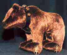 One-of-a-kind. This guy is made of vintage mohair. He is 9.5 inches tall and 14 inches long. He has shoe button eyes, wool felt paw pads, and is cotton stuffed. His wheels are casted. Reference Roller #0006 $149.00 US plus S&H.
