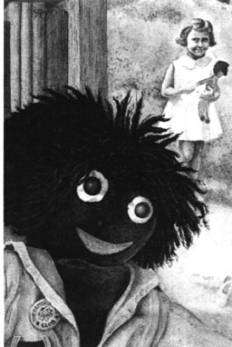 ![]() Golli Coming and Goingby William H. (Bill) Boyd As bits and pieces come my way that you might enjoy reading about, I will do this column exclusively for the I.G.C.C. newsletter. I hope it will be of help to all our readers. One of my English pen pals recently sent me a new Golli postcard. I liked it so well, I asked her to send me a dozen more to share with friends. the card is probably the nicest new Golli card to come out. It shows a great Golli in the foreground and on the background shown holding the Golli is the little girl who owned it. The illustration of the little girl is taken from an original photo. the girl happens to be Pat Holton who has a postcard business in Hampshire. I phoned Pat to ask her permission to write about the card in this column. We had a nice chat and she was happy to let me share the card with our readers. Pat's good friend, Brian Partridge, a well known English artist, is the one who designed the card. Pat's cards are published in Leicester. You can get an idea of Pat's line of cards by checking her website at www.phtopics.clara.net and taking a look at the many and varied topics on the cards she publishes and sells. there are also wonderful Teddy Bear cards. the Golly card sells for fifty pence per card plus one pound for shipping to the U.S.A. for one or more cards. Pat's business is small so she can only accept checks or cash in British pounds. Maybe we can talk Beth into offering the cards for sale through the I.G.C.C. or The Toy Store. Here's Pat's mailing address: 8 Foyle Park, Basingstoke, Hampshire, RG21 3HD, England. If you log onto Pat's website, while you are hooked up and doing some browsing, if your server has access to "ASK REEVES," see if you can come up with Nabokovs Golliwoggs, Lodi reads English, 1899-1909, by D. Barton Johnson. this entry has material that made me laugh out loud! Nabokov, a Russian, as a child received some of Florence K. Upton's Golli books and was deeply impressed by them. Many of his writings are fashioned after Golli's adventures with the two Dutch dolls. I hope the material is still on the net by the time this column comes out. You may be as amused as I was. The Toy & Miniature Museum of Kansas City, has a fantastic exhibit currently on displayed titled, " The art of the Doll." It contains a sampling of works from the members of the National Institute of American Doll Artists (NIADA). If you are anywhere near Kansas City over the next couple of months, you should drop by and see it. To add to the joy of this display, Museum confounder, Mary Harris, whom you may have met at the first GOLLYWOG FEST, has a great display of her personal Golli collection. Few museums in the U.S. have Gollies in their exhibits so here is a great opportunity. A word of warning...those of you who have access to a computer may have visited some of the many auctions available. Recently on the Golli Bulletin Board, word has come from a person who made a purchase through an auction and when it was received the object was not as advertised. When the purchaser asked to return the item for a full refund, he was refused. So, be very careful when doing business through these auctions. It's great to see a photo of the item but nothing can replace handling it for inspection before making a purchase. Some internet auctions are now guaranteeing pieces sold through their auction. You might want to check to be sure that the service available before making any bids. A word to the wise is sufficient! Until next time...Golli Gushes & Warm Fuzzies, Bill Boyd |