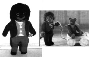 ![]() Dear Golly Lover,A big thank you to those of you who took time to send words of encouragement concerning the last newsletter. It is still a start up mode for me and I hope to continue to improve as I go forward. Plans for Gollyfest are in full swing. It will be such a fun event and there is still time to register. Michael Crane of Deans unfortunately will not be able to join us. however, Jan Ross will be taking his place. Last year Canadian artist, Lorraine Chien did and inexpensive cute Golly for the Ganz Company. At the time I wrote an article about him mentioning that it was nice to see such a large company put a Golly in its line. He must have met with success as Lorraine has designed a new Mini Golly for their Cottage Collectibles line. Golly is still being produced using a gray felt for his face and hands rather than black, as was their larger version. Dressed in a maroon felt jacket, and gray pants, he is fully jointed. At $14.00, he is very reasonably priced. Each comes in a canvas bag. He is in stock now. My English friend, Ann Wyatt sent me an interesting article about Richard Burton who is using Golly to raise money for Leukemia Research. Leukemia is the greatest killer disease of children known to man. Personally affected, when he lost his granddaughter Sara, at the age of 14, three years ago, Mr. Burton vowed to do something to help. Appealing for tokens from Robertson's jam jars, he was able to collect 4,000 which he than cashed in for Robertson badges (pins) and Gollies. these he sold to benefit the charity and has allowed Mr. Burton and his friends to raise over £27,000 pounds ($45,000) for the charity. Although the Golly Beanie Doll can be purchased from Robertsons with cash and tokens for a small amount more the purchase of Mr. Burton fights Leukemia. Mr. Burton recently ran out of tokens and is asking people throughout the U.K. to send him more. I'll keep you posted about this worthwhile venture. See you at Golly Fest, Beth |