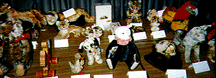 Steiff IX - July 19th - 21st, 1996 The theme of the event was "Under the Big Top". That year’s event started Friday night with a costume party, under the Big Top with carnival tokens and a lecture by Tim Luke, Director of Collectibles of Christies. ![]() Here, I am in my hand-painted costume, a replica Steiff’s Coloro Clown, standing by one of the many exhibits at the show. By the way, my hard work paid off…I received 1st Place for my costume. On Saturday, we shopped in the sales room of Steiff dealers from around the world. There were older pieces, as well as, newer pieces available to purchase. The first lecture, "Steiff, The Rare and Unusual" by David Douglass. It is always delightful to view slides of pieces from David’s collection. And the opportunity to ask him questions about old Steiff. I missed the next lecture…got stuck in traffic on the back to the hotel , and "A Family’s Life with Steiff" by Barbara and Byron Baldwin. But, I really enjoyed the "Teddy B and Golli G. Alive and Well Down Under" By David Worland. Watch out Teddy…here comes the Golliwogs. David presented slides of Golliwogs from his personal collection. It will be interesting to watch how these clever little guys work their way into our hearts. If you are a golli fan, check out the International Golliwog Collector’s Club. ![]() During these lectures, participates displayed for judging their Steiff treasures. The grand winner was this red fox in lavender coat. ![]() Prior to dinner, they held an auction of 75 Steiff items. Shown here are a few of the items. My favorite was a studio tabby cat with wooden eyes. Unfortunately, I didn’t get a picture of it. The dinner speaker was Gunther Pfeiffer author the new book, "Steiff Sortiment, 1947-1995". The weekend concluded for us with presentation of the awards, Steiff trival contest and breakfast. For those who missed this event, I recommend participating in next year’s event, July 11th-July 13th, 1997, hosted by The Toy Store, Toledo, Ohio, USA.. Call Ben at 1-800-862-8697 or 419-473-9801 or snail mail: The Toy Store, Franklin Park Mall, 5001 Monroe Street #336, Toledo, Ohio 43623, USA. And remember to tell them you read about it on The Great Teddy Bear Hug! |